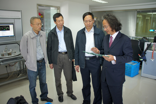 4月6日下午,知联会会长、区人民镇府副区长刘文科,知联会会长、区委统战部常务副部长牟剑鸣一行到我公司走访调研,图为戴翔总经理向二位领导介绍公司汽车专用软件及工业机器人研发情况。